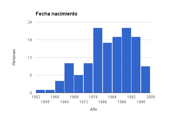 A pesar de esta casi nula promoción, se registraron un total de 385 personas, en la línea de otro de los MOOC piloto de la UPC. De los 140 que iniciaron el curso un tercio procedían de Latinoamérica y dos tercios de España, dos personas desde Pakistán y una desde Japón. En términos de género, un 30% eran mujeres y un 70% hombres, un porcentaje sorprendente mente elevado para los estándares de la UPC. La distribución por edades la tenéis en esta gráfica, estando la mayor parte entre 22 y 36 años. Si la idea inicial era ofrecer el curso a estudiantes de grado, el mercado ha demostrado que el interés está centrado en una franja de edad más madura.